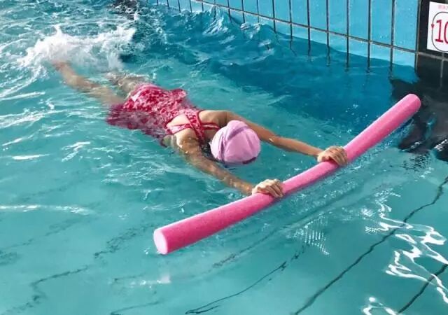 扒在池边,小腿扑打着浪花,练习着呼气吐气