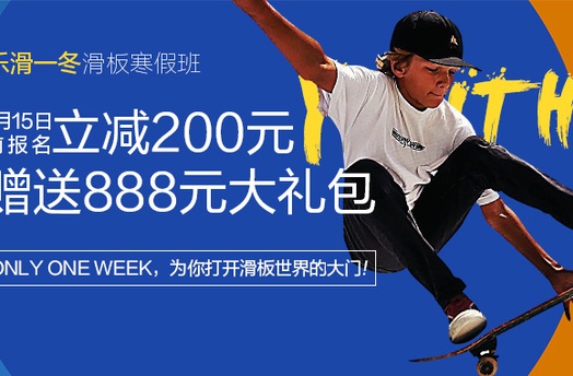 (送888元大礼包,内含国际品牌滑板、专业头盔、护掌、护肘、护膝)